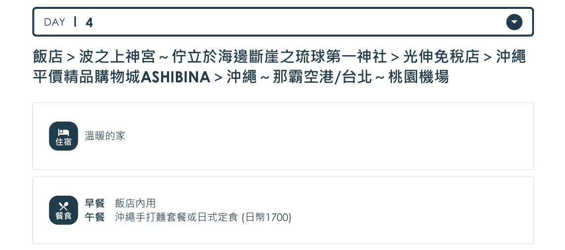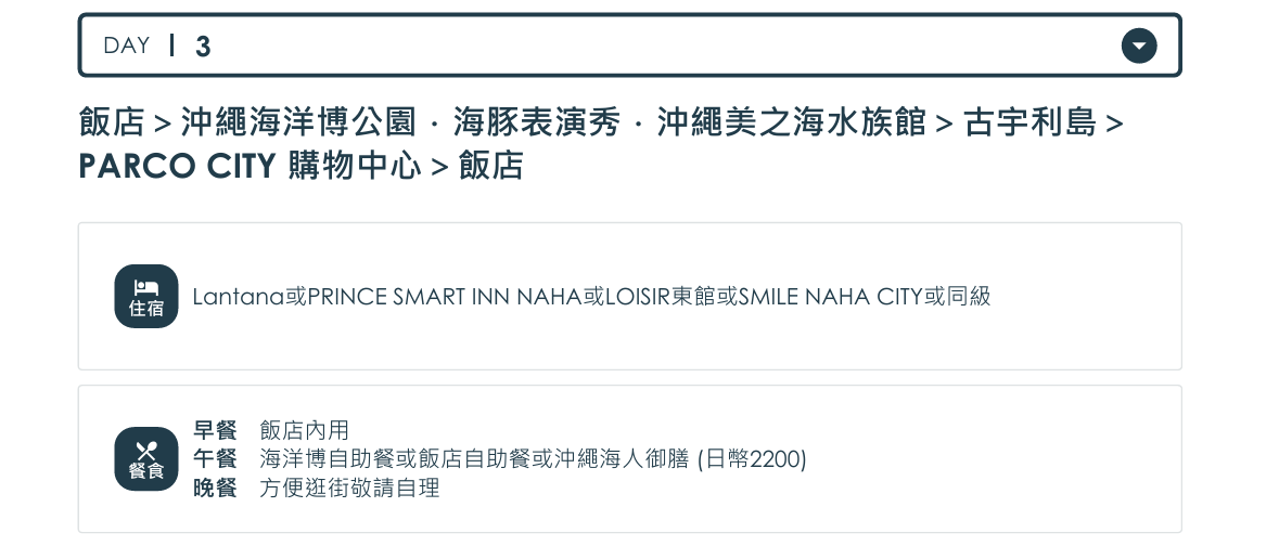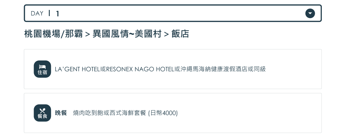 餐食:早-飯店內 午-琉球風味套餐或日式傳統風味定食2500 晚-北谷蒸氣海鮮套餐或燒肉吃到飽 4000