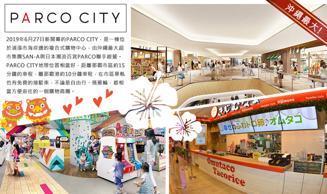 沖繩備受注目的新景點「San-A浦添西海岸Parco City」購物中心在2019年6月誕生啦!這裡有許多從時尚品牌、化妝品、伴手禮及雜貨等店舖,另外壽司、燒肉、拉麵到日本料理店也應有盡有。2019年6月27日新開幕的PARCO CITY,是一棟位於浦添市海岸邊的複合式購物中心,由沖繩最大超市集團SAN-A與日本潮流百貨PARCO聯手經營。PARCO CITY地理位置相當好,距離那霸市區約15分鐘的車程,離那霸港約10分鐘車程,在市區單軌也有免費的接駁車,不論是自由行、搭郵輪,都相當方便前往的一個購物商圈,除了永旺夢樂城沖繩來客夢和沖繩Outlet Mall Ashibinaa以外,沖繩又多了一個購物逛街的好地方。PARCO CITY共有六層樓,1~3樓是商業設施,目前共有250商店進駐,目前為沖繩店鋪數量最多店鋪的賣場,其中有94間為初次進駐沖繩的店家,不少店鋪特別設計了沖繩限定的商品,只有在PARCO CITY才能購買到。4~6樓則是室內停車場樓層,加上戶外平面停車場共可以容納約4,000輛汽車。