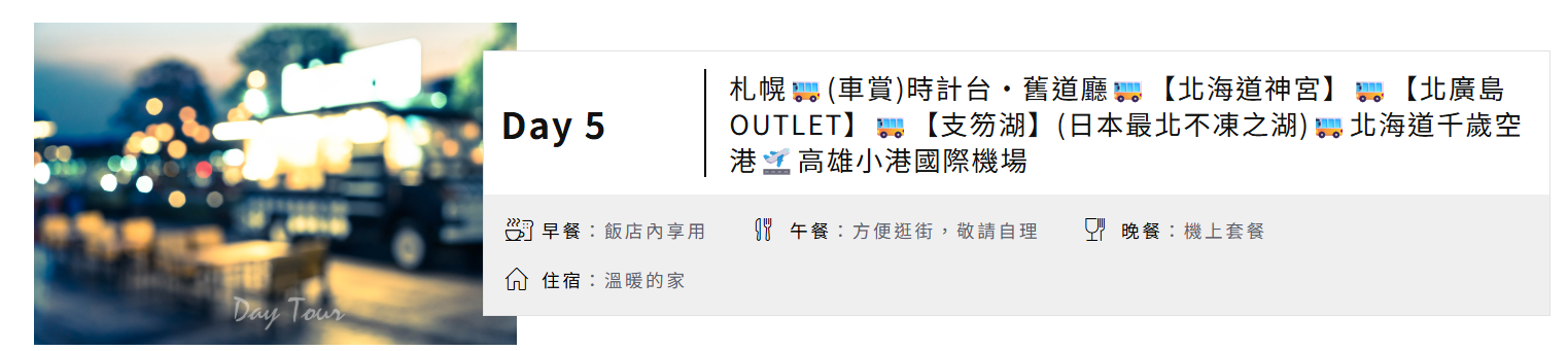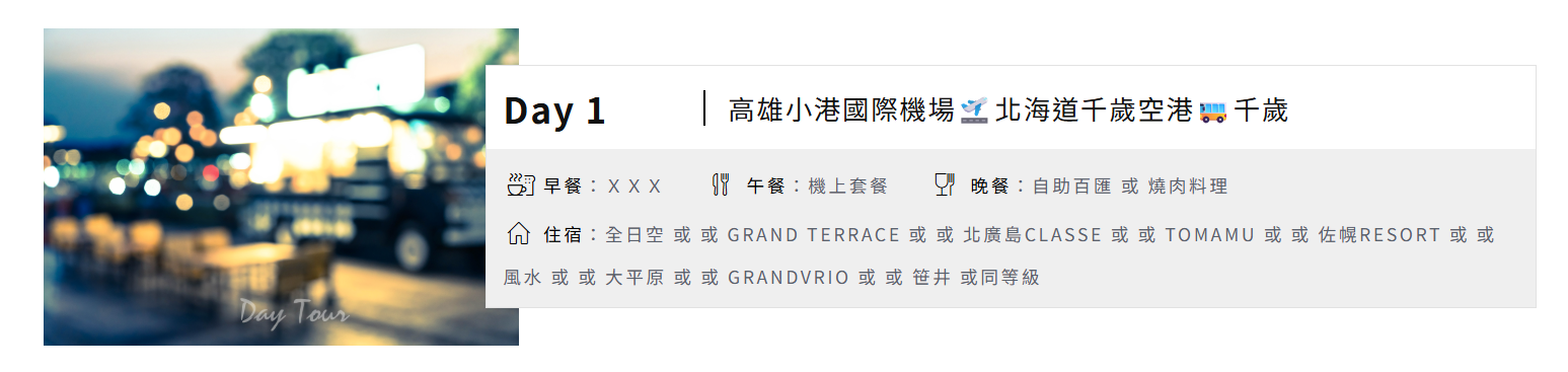 今日搭機飛往日本北海道新千歲空港。抵達後驅車前往下榻飯店休息。