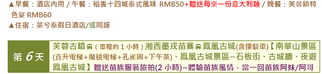 溫馨小提示:鳳凰位於湖南省西南方,餐廳的條件皆不如長沙.張家界,因此菜色餐廳方面較其他餐稍遜,望客人諒解!