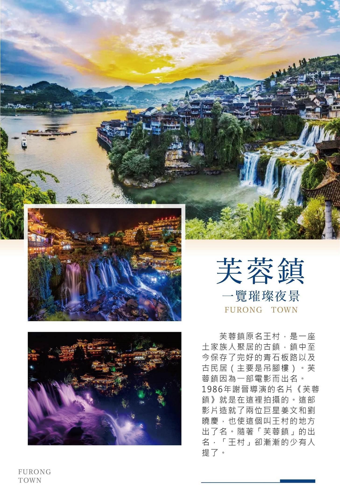 芙蓉古鎮:本名王村,是一個擁有兩千多年曆史的古鎮,因為宏偉瀑布穿梭其中,又稱“掛在瀑布上的千年古鎮”。位於湘西土家族苗族自治州境內的永順縣,與龍山裡耶鎮,瀘溪浦市鎮,花垣茶峒鎮並稱湘西四大名鎮,又有酉陽雄鎮,“小南京”之美譽。