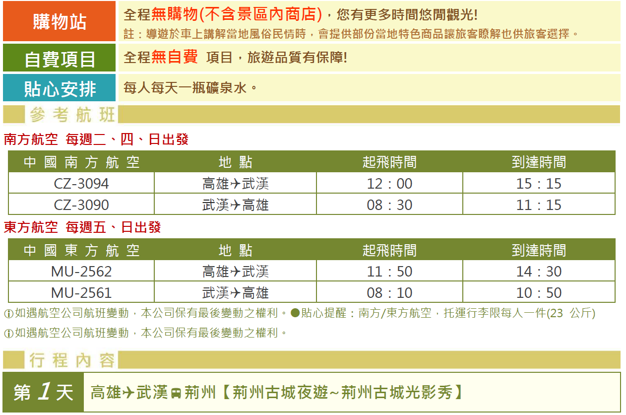 ※今日集合於高雄小港機場,搭乘豪華客機前往霧都【武漢】。
