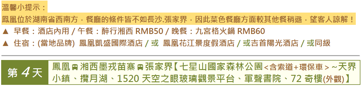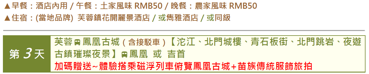 湘西墨戎苗寨:前往湘西最大的古樸苗寨——【墨戎苗寨】。對了歌、喝了酒、擊完鼓,才能走進這個原始神秘的古苗寨,去茶農家裡品鑒最好的“有機茶”——“古丈毛尖”;精彩絕倫的各種苗族手工紡織、銀器鍛制技藝尤為讓人歎為觀止;神秘的湘西巫術更會讓您瞠目結舌、目瞪口呆……。(非一般傳統購物站,此為景區體驗活動與景區企業相結合的展示商場)