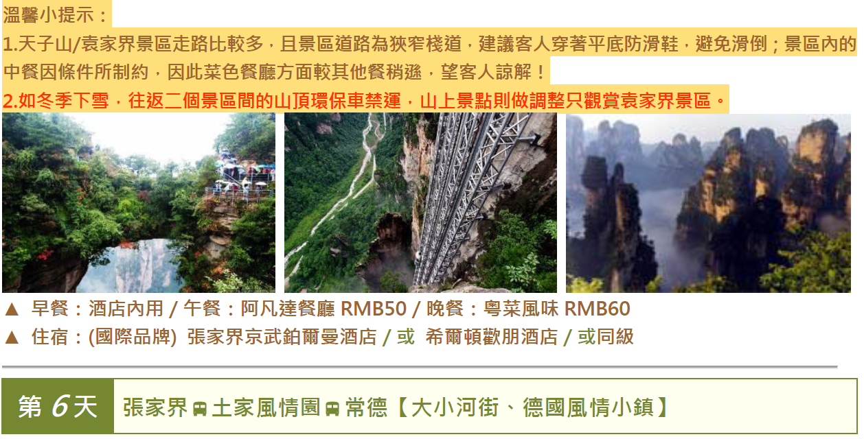 袁家界風景區:位於砂刀溝北麓,是武陵源又一風景集中之地。後花園有《天然盆景》之稱,園內石峰千姿百態,溪水繞峰而流,山上古木參天,雲霧瀰漫,猶如古時皇宮內的後花園一樣。景區內著名的景點有:『迷魂台』、『天下第一橋』…