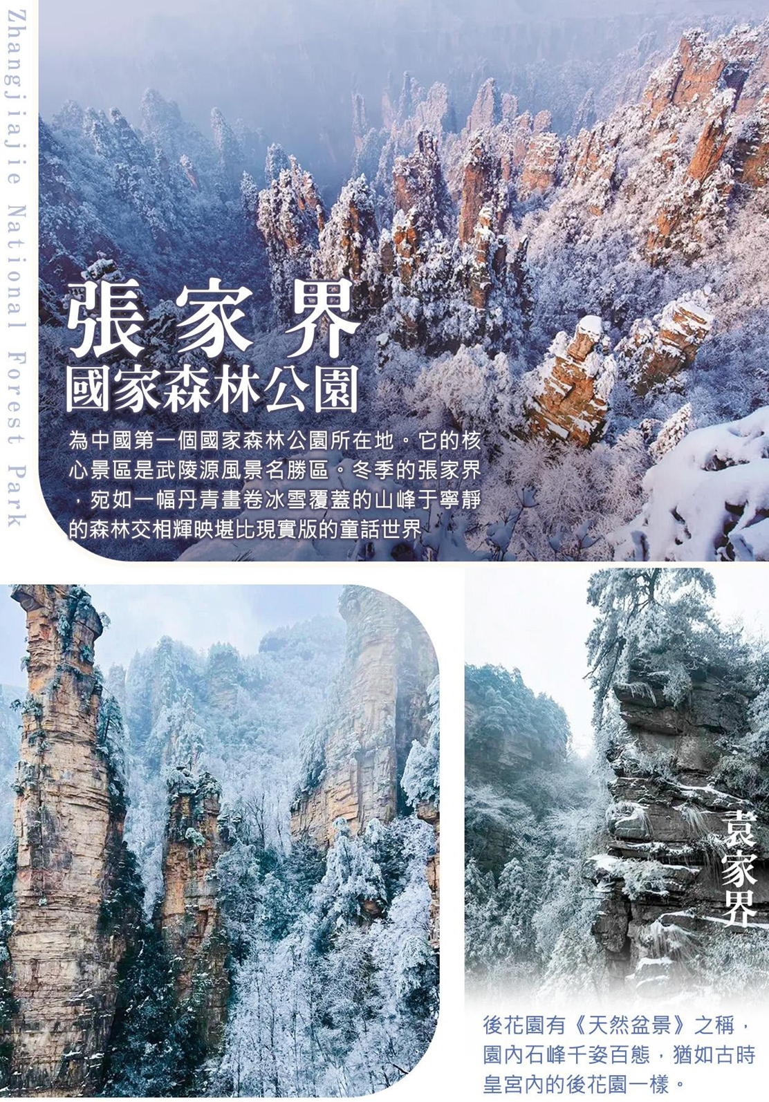 張家界:又名青岩山,為中國第一個國家森林公園所在地。它的核心景區是武陵源風景名勝區,整個景區包括張家界森林公園.袁家界風景區.楊家界風景區.天子山自然保護區.索溪峪自然保護區。方圓 369 平方公里,擁有三百多個景點,上千處潭.湖.溪.瀑,上萬種珍稀動植物,它以雄.奇.幽.野.秀.峻.險的景觀,贏得了“風景明珠”的美譽。