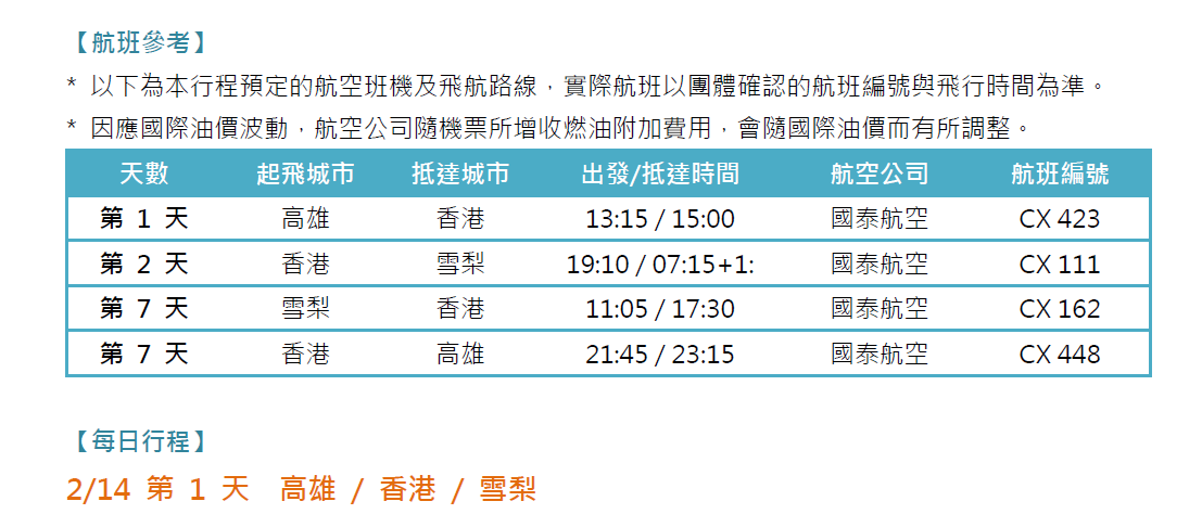 【出發日期】2/14【現金團費售價/人】95,900 元起/人