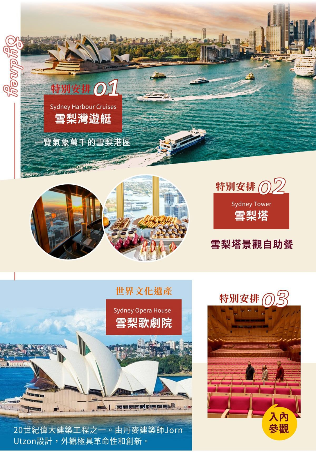 隨後帶您拜訪世界知名、造型獨特的【雪梨歌劇院】, 是澳洲最具代表性的地標建築,而獨特的造型設計也為它在世界建築上佔了一席之地,曲折建造過程及內部建材選用和意義,都是之所以獨一無二的原因,襯著背後大海及藍天,是不少旅客攝影的地點。