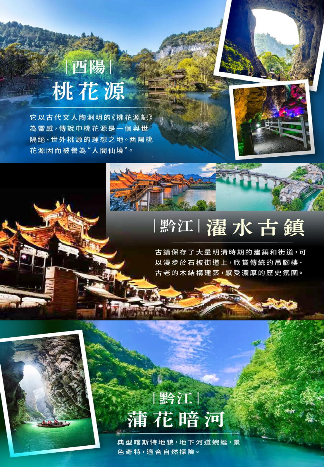 【桃花源】地處武陵山區腹地,國家 5A 級旅遊景區~這裏有古老的溶洞、清幽的溪流、茂密的森林,共同構成了一幅美不勝收的自然畫卷。步入桃花源,仿佛穿越時空隧道,回到了秦晉時期。狹窄的洞口,透露出神秘的氣息。穿過洞口,豁然開朗,一片寧靜的田園風光展現在眼前。桃花盛開時節,粉色的花瓣如雪花般飄落,美不勝收。古老的村落中,木質的房屋錯落有致,青石板路蜿蜒曲折,仿佛在訴說著過去的故事。世外桃源:這個詞語來自於陶淵明的《桃花源記》,描繪的是一個與世隔絕的理想世界。在旅遊景區中,"世外桃源"通常用來描述一個環境優美、遠離塵囂的地方,遊客可以體驗寧靜、純淨的自然景觀和文化氛圍。 問津亭:"問津亭"常常是以歷史或文化背景為基礎而建立的一個小亭子,可能是紀念歷史人物或者特定的事件。在古代文人中,亭子是常見的遊覽和沉思的地方,具有濃厚的文化氣息。 陶公祠:陶公祠是為了紀念陶淵明而修建的建築,陶淵明是東晉時期著名的詩人和文學家,被譽為“田園詩人”。祠堂可能會展示陶淵明的生平和文學成就,吸引對中國古代文化和文學感興趣的遊客。太古洞:太古洞是個自然洞穴景區,可能以其獨特的岩洞景觀和豐富的歷史文化背景吸引遊客。通常,類似的景區有奇特的鐘乳石、石筍等自然景觀,適合探險和遊覽。