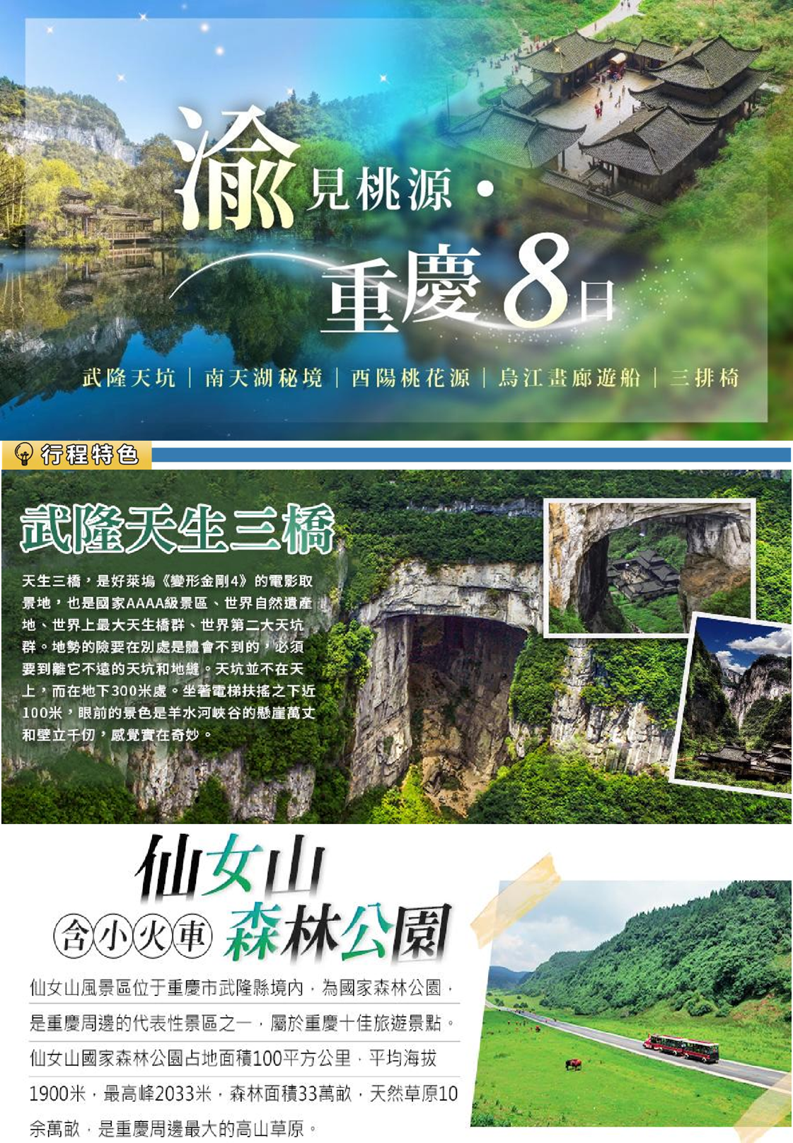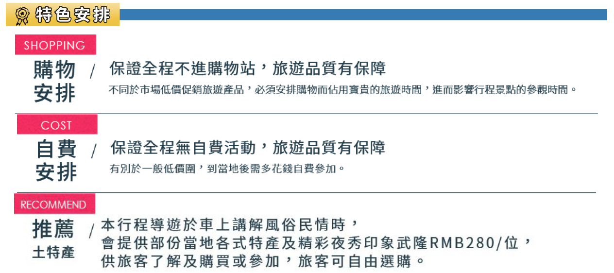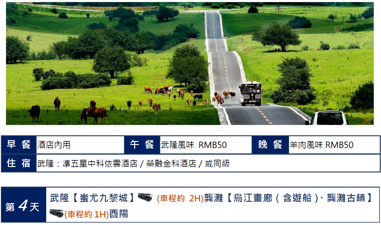 行程結束後,會推薦極具震撼力與在地特色的演出【印象武隆】大型山水實景秀,(普通座)280RMB/人。