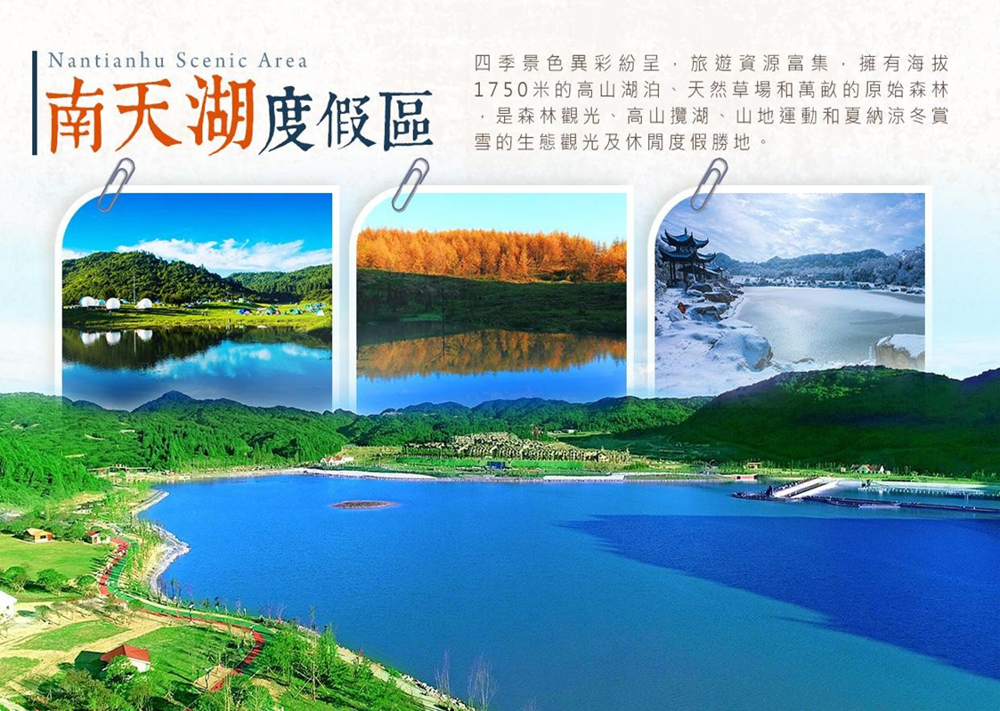 【南天湖度假區】位於重慶豐都縣,海拔約 1400 至 2000 公尺,是遠離都市塵囂、擁抱自然的絕佳避暑勝地。氣候涼爽宜人,夏季平均氣溫僅約 20 度,是許多旅人喜愛的清涼天堂。整個度假區規劃完善,融合山水風光、森林秘境與休閒設施,適合親子、情侶或長者同行旅遊。湖濱公園:湖面清澈如鏡,倒映藍天綠樹,可搭乘電瓶車繞湖一周。環湖小火車:乘坐小火車,沿著湖畔緩行,欣賞岸邊草地、木棧道與水上玻璃觀景平台,拍照打卡極具詩意。天堂谷森林公園:這裡保留原始森林風貌,峽谷溪流交織其間,空氣中滿是芬多精。可選擇步行或搭乘小火車深入谷底,沿途可見奇岩怪石、瀑布飛瀉,是森林探險與避暑療癒的好去處。